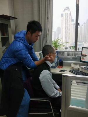 配合“一院一品”活动,公司还组织员工进办公室为全校老师做肩颈部按摩,这是体育公司员工对全体老师的一份感恩回报。老师们因为工作压力或就久坐桌前伏案疾书造成颈肩腰肌劳损,需要得到梳理。肩颈按摩可放松颈部神经,减轻颈部肌肉的僵硬疼痛与酸胀不适的感觉,还可促进颈部的血液循环,使椎动脉血流量增加,进而使脑供血量增加,脑细胞含氧量增高,改善脑组织代谢,增强记忆力,对顽固性偏头痛也有一定的止疼效果。还可调节植物神经的功能,改善失眠多梦、神经衰弱的症状,肩颈按摩后往往可使患者进入深度睡眠,机体可充分放松休息。还可提高免疫力,改善亚健康状态,增强人体的抵抗力。