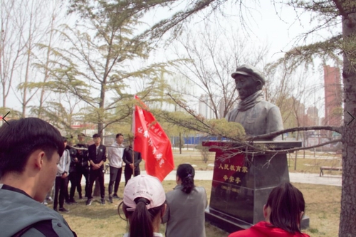 活动有五个议程,首先员工干部李柱、刘炳均等先对辛安亭先生的雕像进行了清洗,对周围花坛进行整理,还先生一个干净整齐的花园环境。接着胡曦霞副经理说明了举办此次纪念活动的目的和意义,随后师生代表敬献了花束,在庄严肃穆的氛围中,全体人员向辛安亭先生三鞠躬,以表达对辛老的深切缅怀与敬佩之情。