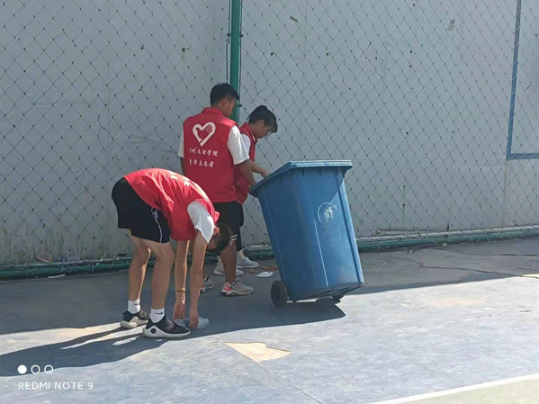 在此次活动中,公司党支部提前安排,世界杯8833300足球教师党支部书记刘曼冬、世界杯8833300足球员工党支部书记刘天明以及世界杯8833300足球分团委书记王国潇认真组织本次活动,到场志愿者与老师热情参与、积极参加到打扫卫生的队伍之中,由刘天明和刘曼冬带领王祥、张海霞等三名同学对篮球场上的垃圾、篮球架上的尘土进行深度的处理。之后,王国潇老师带领闫杰、王兆艳等5名同学对操场的卫生死角进行处理。每位志愿者与党员老师用自己的汗水践行为师生办实事,进一步优化了第二操场的卫生环境。