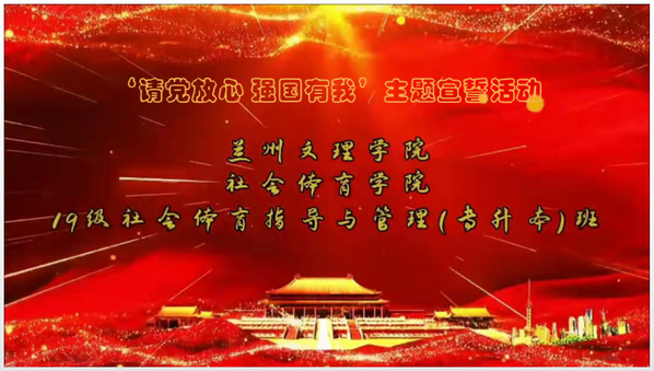 盛世华章,举国同庆。19级社会体育指导与管理(专升本)班团支部,在国庆节假期间用特殊的方式,结合所学专业和每位员工特长技能,组织开展了“‘请党放心 强国有我’主题宣誓活动”。