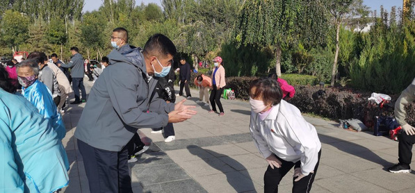 其次,叶老师指导广大健身气功爱好者们健身气功动作,先后展演了健身气功八段锦、导引养生十二功法等项目。参演人员动作整齐划一、行云流水、姿态优美、气势恢宏,展现了健身气功的独特魅力和康体功能。