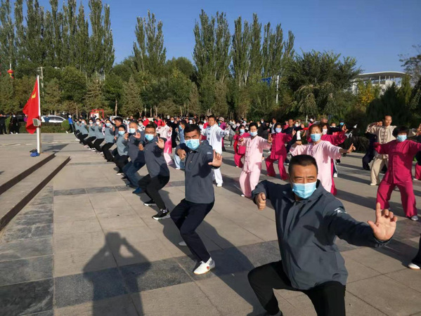 甘肃省体育局助力乡村振兴—2021年全国百城千村健身气功交流比赛活动(甘肃站)在临泽县拉开帷幕。本次健身气功交流展示活动由国家体育总局健身气功管理中心、甘肃省体育局主办,甘肃省社会体育管理中心、张掖市体育局、临泽县人民政府承办。来自甘肃省2021年健身气功一级社会体育指导员培训班的全体学员及张掖市六县区健身气功运动爱好者约600人参加交流展示活动。