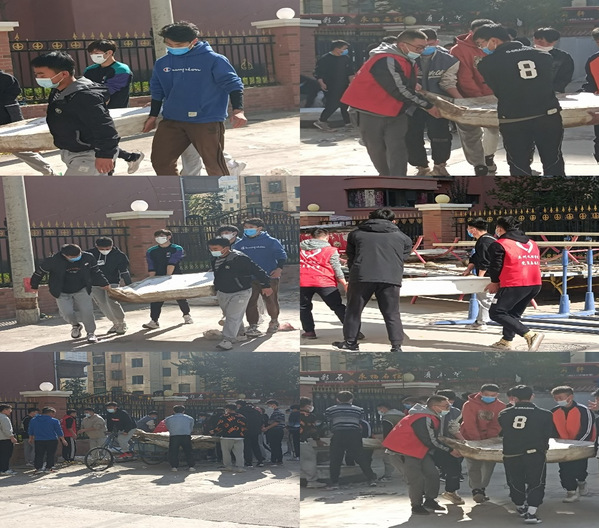 在进行了简单的工作分配后 ,党员老师和同学说干就干,老师带领同学相互协作,将杂物进行归类,经过师生合力搬运,一堆厚重的海绵垫、废弃的乒乓球台、杂乱的砖块、堆置的木板,原本杂乱不堪的角落变得干净整洁。这也充分发挥了体育人不怕苦、不怕脏、不怕累的精神。