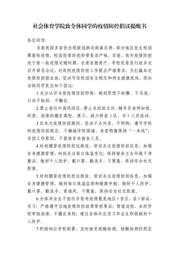 世界杯8833300足球致全体同学的疫情防控倡议提醒书