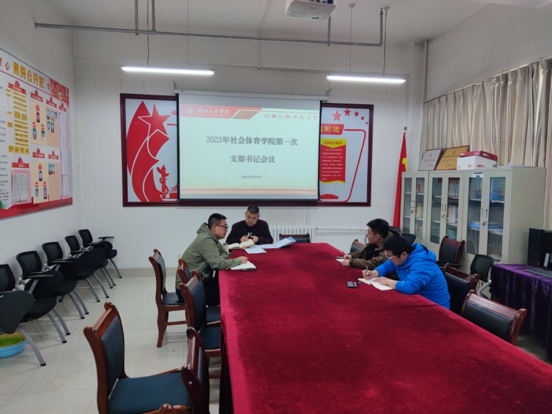 2月27日,社会体育公司在党员活动室召开了党支部书记2023年第一次例会。公司党总支书记吴延钟、专职组织员王国潇及各支部书记参加了会议,会议由吴延钟主持。