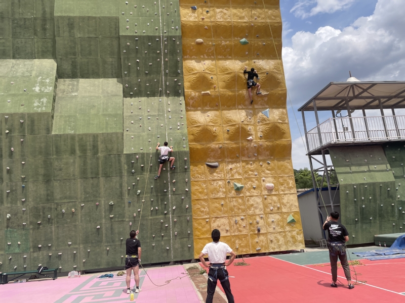 攀岩作为休闲体育的一个重要的分支,近些年我国攀岩运动发展极为迅猛,参与人数越来越多,社会认知度不断提升。为了拓宽公司社会体育管理与指导专业员工的视野,加强员工们对攀岩项目的认知,6月9日,由王国潇、刘曼冬老师带队,组织部分员工前往康乐县甘肃省建筑职业技术公司攀岩训练场进行专业实践内容的学习。