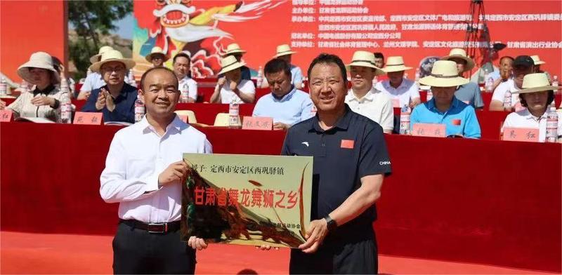 会上,甘肃省龙狮运动协会副会长陆克珠代表甘肃省龙狮运动协会授予西巩驿镇“甘肃省舞龙舞狮之乡”称号。