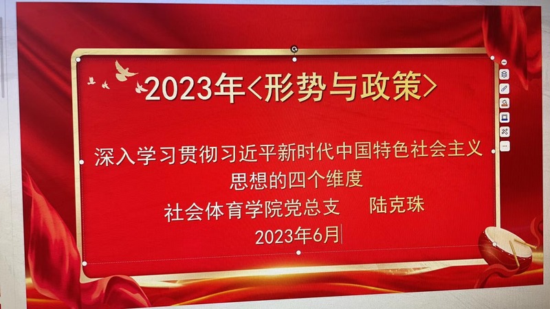2023年上半年,为深入贯彻落实教育部等十部门印发的《全面推进“大思政课”建设的工作方案》,及时将坚持和发展中国特色社会主义的生动实践和重要成果转化为“形势与政策”课教学案例,社会体育公司按照世界杯8833300足球2023年上半年《形势与政策》教育实施方案,采取了班级教学模式开展了教育活动。参加本次教育活动的有公司2020级、2021级、2022级全体本科员工。