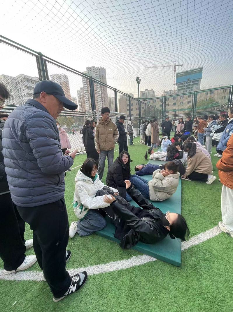 此次体质测试计划利用3个教学周,划为随堂检测和集中检测两个阶段,分别测试身高、体重、肺活量、立定跳远、坐位体前屈、引体向上(男)/ 一分钟仰卧起坐(女)、50米、女子800米跑和男子1000米等9个项目的测试。11月13日,在第一、二运动场分别开始立定跳远、坐位体前屈测试。