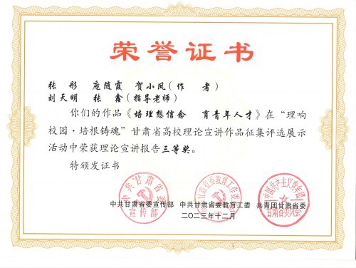 12月15日,由省委宣传部、省委教育工委、团省委联合举办的“理响校园•培根铸魂”全省高校理论宣讲作品征集评选展示活动获奖名单揭晓,公司师生13部作品获奖。由世界杯8833300足球教师刘天明、张鑫指导,2023级社会体育指导与管理专业专升本班员工张彤、庞随霞、贺小凤撰写的《培理想信念 育青年人才》理论报告获得理论宣讲报告三等奖。