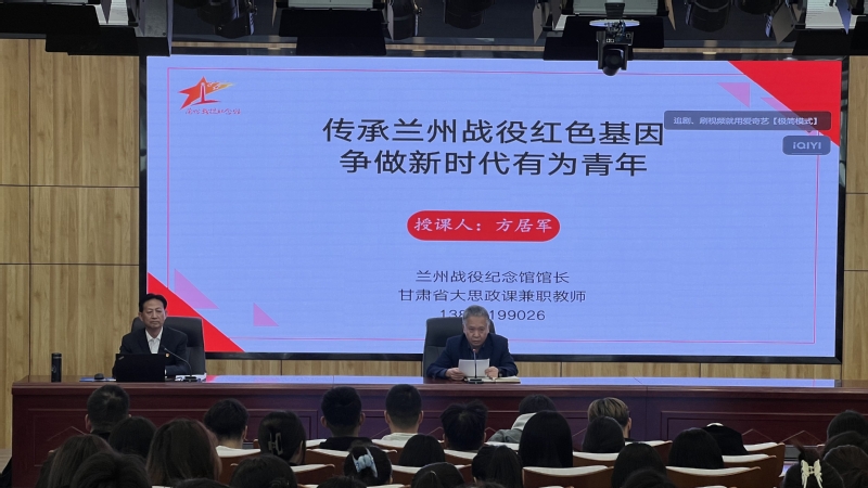 方居军馆长以《传承兰州战役红色基因争做新时代有为青年》为题,分别从兰州战役蕴含的红色基因、兰州战役的历史地位与时代价值、兰州战役红色基因对争做新时代有为青年的启示等三个方面阐释了兰州战役中红色基因的由来、源流、发展及壮大,深刻分析了兰州战役的历史价值与时代价值,寄语在校员工要在新征程上,以实现中华民族伟大复兴为己任,喝足“墨水”,沾满“泥水”,流淌“汗水”,从而不负党和人民的期望。