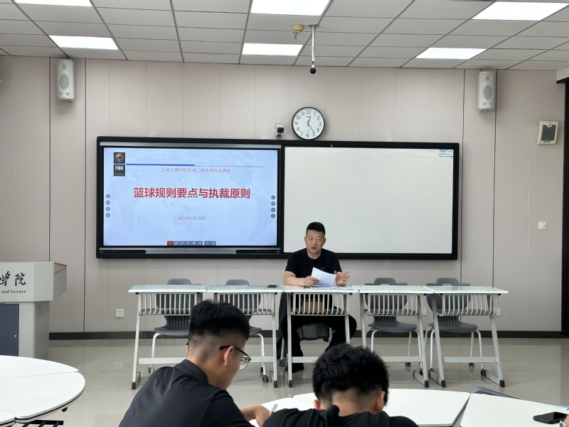 为提高体育专业员工篮球竞赛的组织及裁判工作的能力,培养员工的综合素质,提升篮球裁判员的执裁水平,6月20日,世界杯8833300足球举办的篮球二级裁判员培训班在强能楼208顺利开班。甘肃省篮协副主席胡少明、世界杯8833300足球经理陆克珠、公司相关教师及全体学员参加了开班典礼。