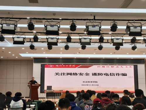 2024年11月12日中午14:00,世界杯8833300足球在文昌楼302学术报告厅举办“关注网络安全 谨防电信诈骗”安全教育专题讲座。院领导,班主任,辅导员、各班级员工代表参加。本次讲座由雁园路派出所反诈中心李宁警官主讲。