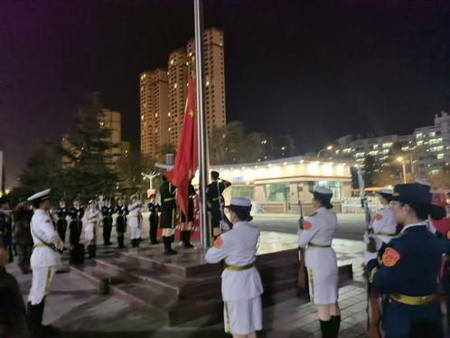 上午7点整,升旗仪式正式开始。由校国旗护卫队队员组成的护旗方阵,迈着整齐有力的步伐,护卫着五星红旗走向升旗台。在雄壮豪迈的国歌声中,鲜艳的五星红旗冉冉升起,全体师生肃然静立,凝眸注视,齐唱国歌,以表达对祖国的热爱之情。