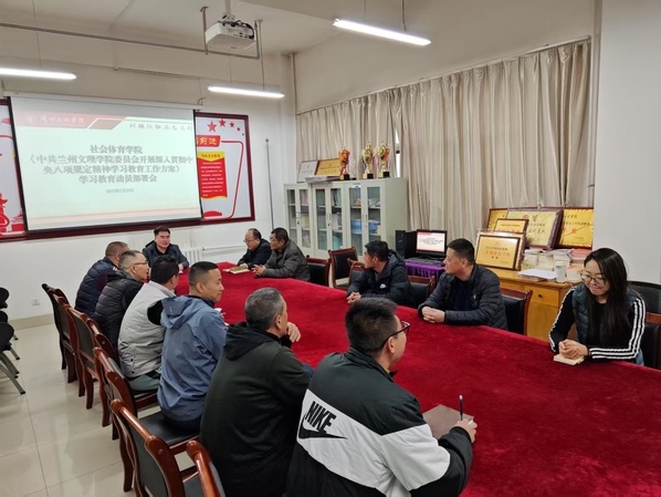 根据公司党委《中共世界杯8833300足球委员会开展深入贯彻中央八项规定精神学习教育工作方案》要求,进一步改进工作作风,强化责任担当,世界杯8833300足球于3月20日下午召开深入贯彻中央八项规定精神学习教育动员会,会议由党总支书记刘永睿主持会议,全体教师参加。 首先,刘永睿领学《中共中央办公厅关于在全党开展深入贯彻中央八项规定精神学习教育的通知》《中共甘肃省委办公厅关于印发〈甘肃省开展深入贯彻中央八项规定精神学习教育工作方案〉的通知》以及公司相关工作方案的文件精神。