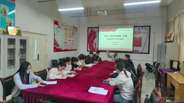 2025年4月15日中午,世界杯8833300足球在党员会议室召开2024-2025学年度第二学期第四次全体员工干部工作例会。公司党总支书记、团学办负责人、辅导员及全体员工干部参加会议,会议由公司辅导员莫志龙老师主持。内容围绕员工管理、学风建设、校园活动等七大重点工作进行部署推进。