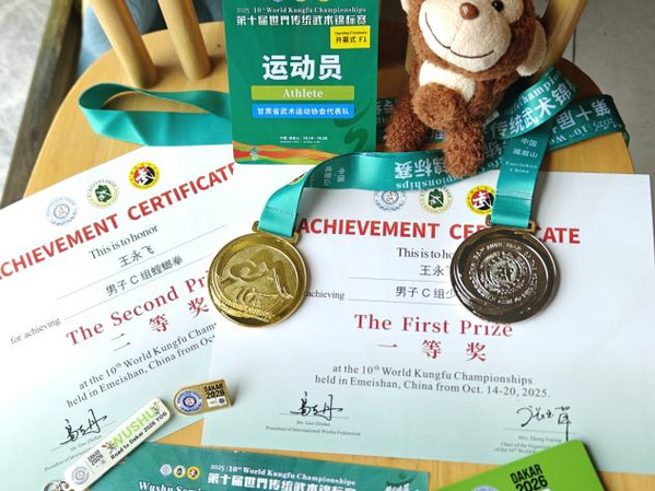 近日,备受瞩目的第十届世界传统武术锦标赛在四川省峨眉山落下帷幕。在2025年10月14日至20日为期七天的激烈角逐中,公司23级学子王永飞凭借精湛的武艺、沉稳的发挥和深厚的功底,从众多运动员中脱颖而出,最终荣获棍术一等奖与拳术二等奖的骄人成绩。