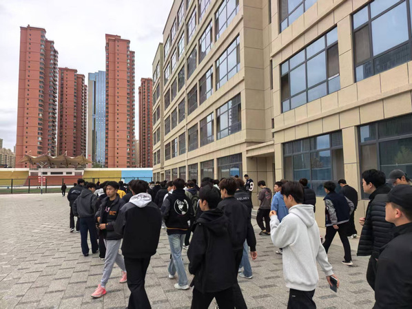 随后的消防应急疏散演练环节模拟了教学楼突发火情的情景。随着警报声响起,300余名师生在工作人员引导下,用湿毛巾捂住口鼻,弯腰低姿,按照预定路线迅速有序撤离至安全区域。整个过程紧张而不慌乱,达到了演练的预期效果。