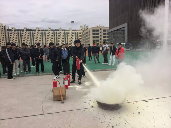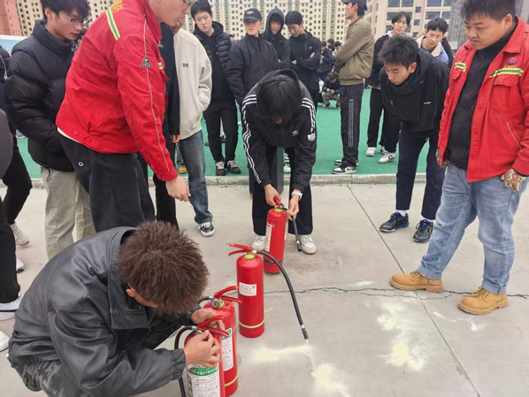 最受师生欢迎的是灭火器材实操培训。在操场指定区域,王老师现场演示了干粉灭火器的正确使用步骤——“提、拔、握、压”。师生们纷纷踊跃上场,亲身体验了如何对准火焰根部进行喷射灭火。一位参与演练的大二员工表示:“以前只在电视上看过用灭火器,今天自己实际操作了一遍,心里踏实多了,真的遇到小火也知道该怎么做了。”